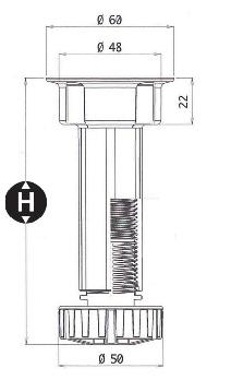 nožka kulatá plastová s rektifikací a přírubou