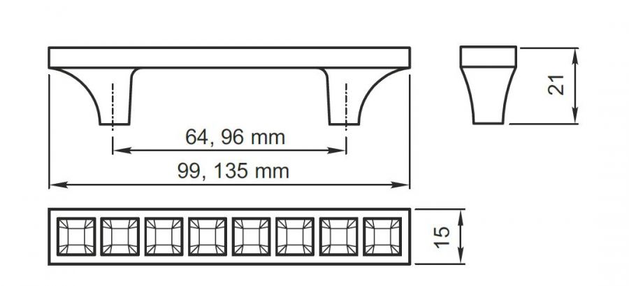 úchytka kov - sklo CR2 chrom rozteč 96mm